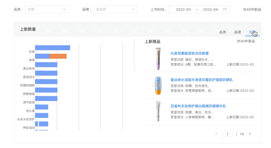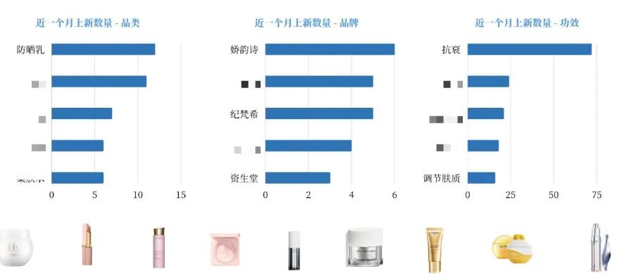 2022年3-4月,防曬乳成為上新多的品類;紀梵希4月上新煥膚系列,資生堂在本月主要上新的是男士煥能系列產品。抗衰、煥亮及膚質/膚色整體的調節(jié)成為上新產品主打功。