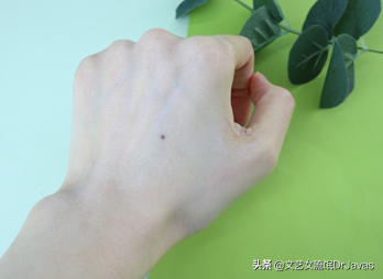 在手上做測(cè)試的效果,一點(diǎn)都不油膩,有美白補(bǔ)水的效果