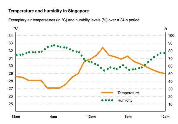 新加坡以其炎熱潮濕的天氣而聞名。島上氣候全年變化不大。白天的平均溫度為 31oC (88oF)。而在晚上,溫度會(huì)下降到大約 24oC (75oF)。由于每年 11 月開(kāi)始進(jìn)入雨季,建議游客在此期間帶上雨傘。