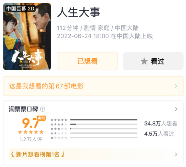 《人生大事》點(diǎn)映,口碑爆棚(標(biāo)紅)