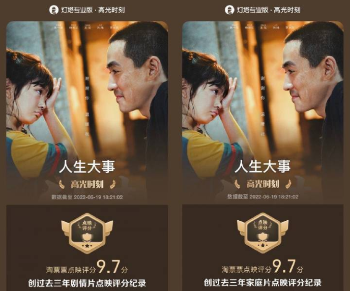 據(jù)燈塔專業(yè)版顯示,本片也創(chuàng)下近三年劇情片、家庭片點(diǎn)映評分雙紀(jì)錄!