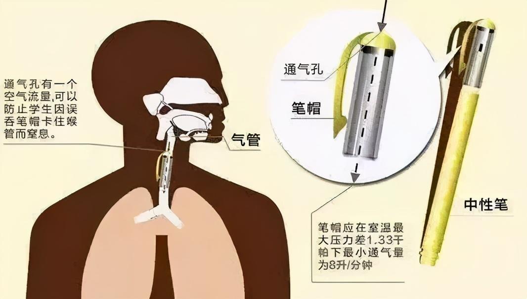 值得一提的是,誤吞筆帽致兒童出現(xiàn)呼吸困難的事件時(shí)有發(fā)生。而根據(jù)標(biāo)準(zhǔn)規(guī)定,直徑小于16mm的書寫筆筆帽應(yīng)打孔或留有通氣面積,一旦被誤吞,這個小孔可以起到通氣作用,避免堵塞兒童的氣管。