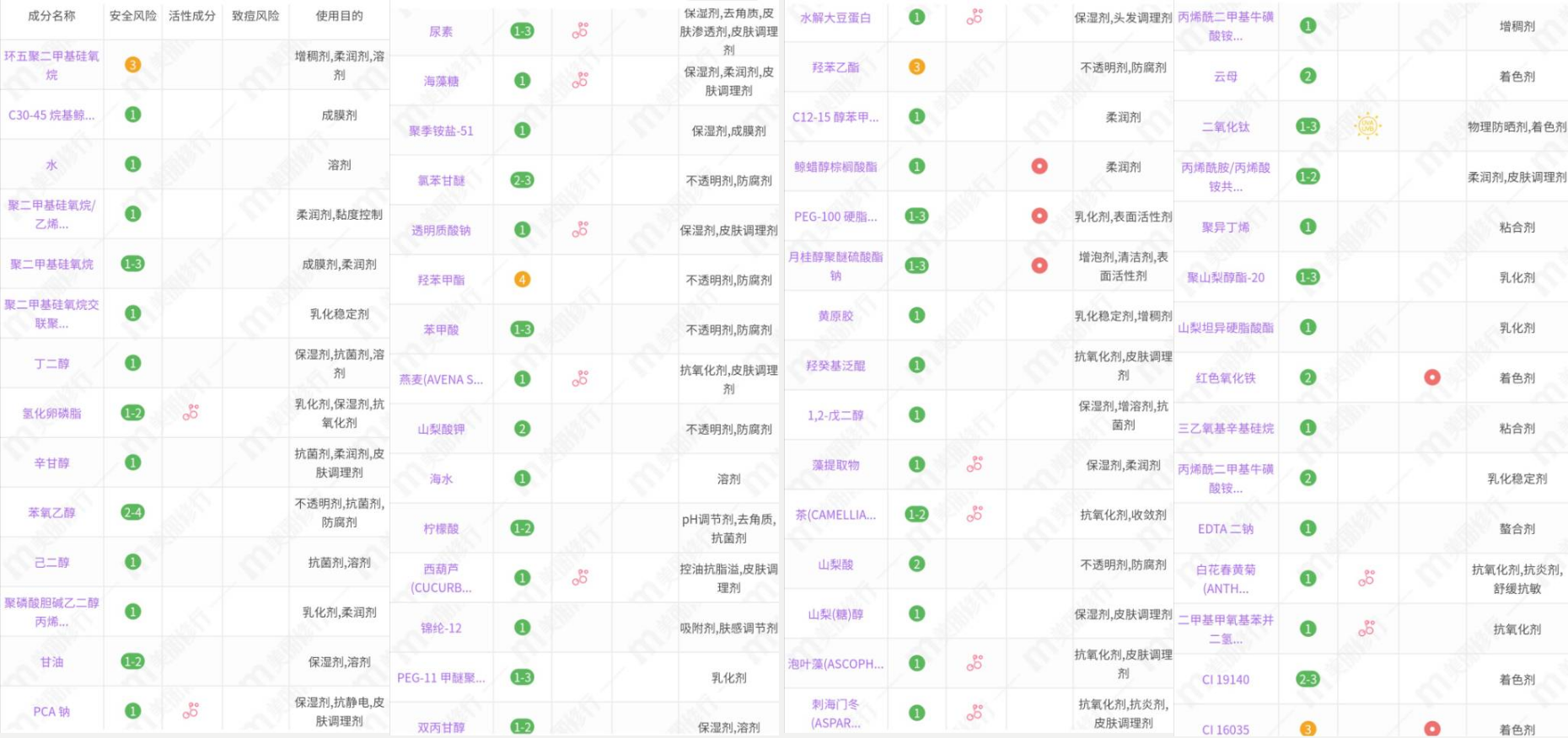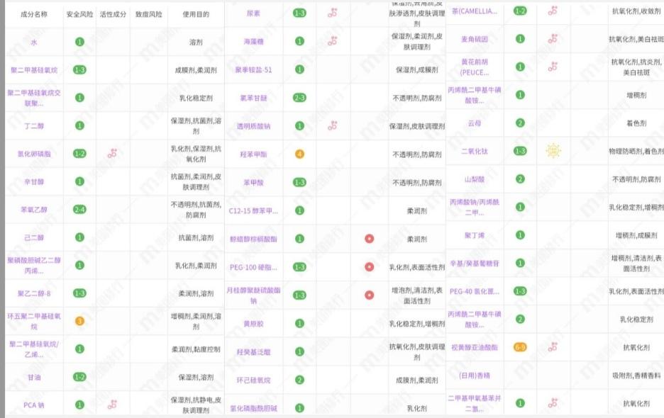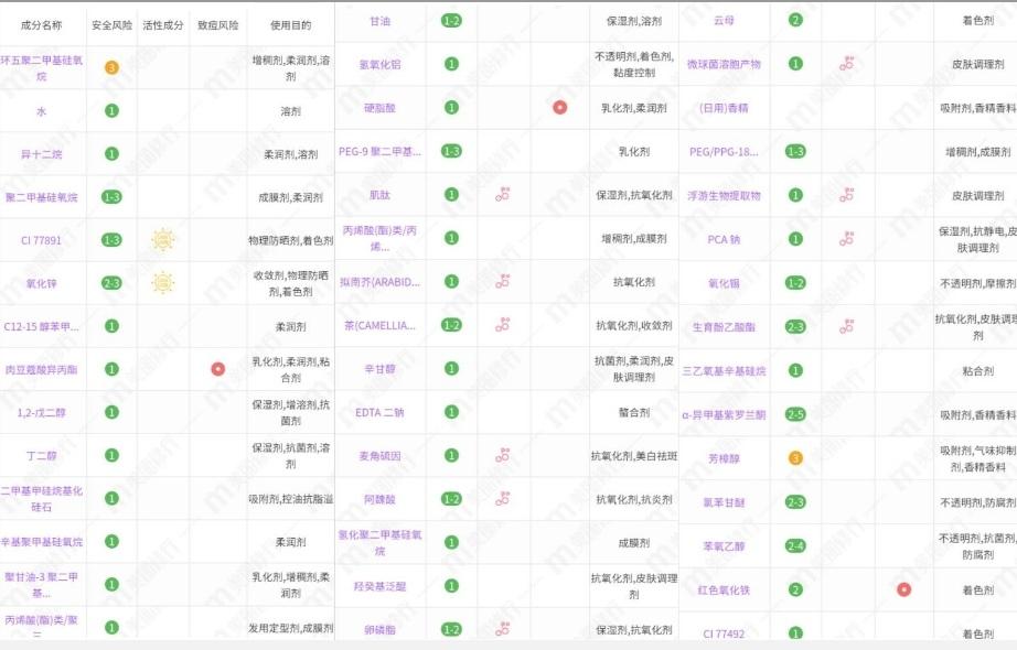 主要的防曬成分是氧化鋅和CI77891,成分很高,主要是物理防曬。雖然是防曬霜,但是也有不少護(hù)膚成分,抗氧化劑也有好幾個,是可以有效抗氧化的。