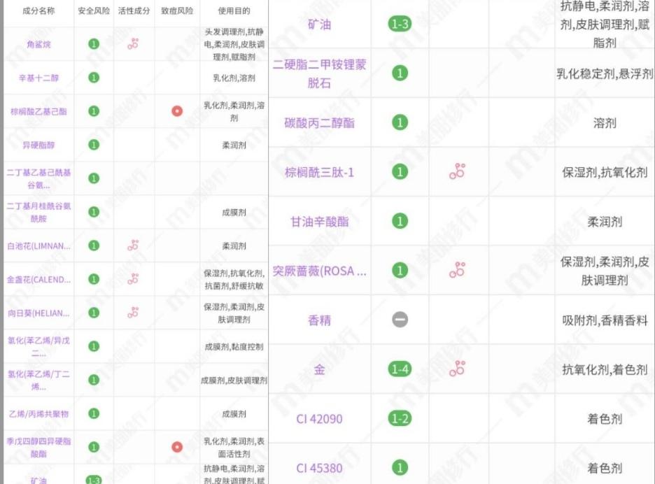 成分有我們熟悉的角鯊?fù)?,金那個就是金箔了。白池花、金盞花和向日葵這些植物成分既溫和又能保濕舒緩。成分很,有香精但是沒有添加防腐劑。