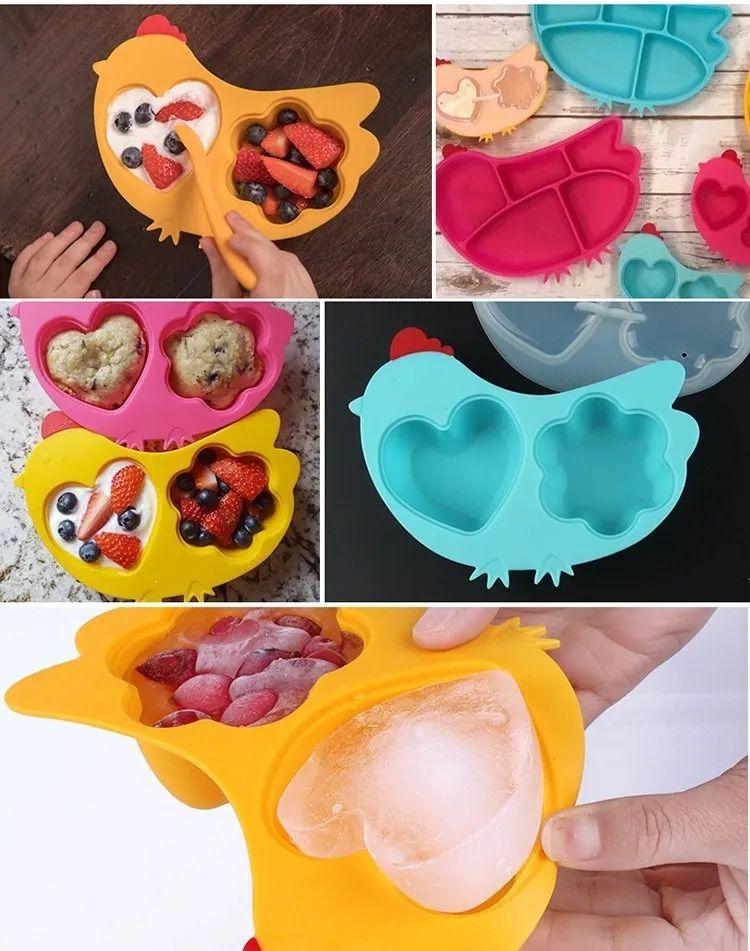 小雞分格盤是食用級(jí)的硅膠材,一體成型,-40°C~250°C可用,又方便,不用擔(dān)心會(huì)產(chǎn)生有害物質(zhì)。小雞餐盤可以直接用來(lái)烘培、蒸、煮,方便!