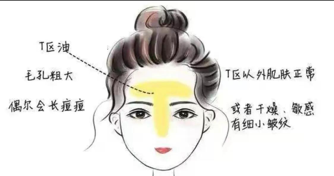 只有額頭、鼻子這個(gè)T區(qū)部分出油,那么就是混合性皮膚