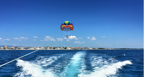 拖曳傘是一項(xiàng)極富刺激性的海上運(yùn)動(dòng),從起飛到降落,一切動(dòng)作均在快艇上完成。起飛前,我們的工作人員會(huì)為您穿好降落傘,系好拖繩,拖繩和高速快艇相連。隨著快艇加速,穿著降落傘的您會(huì)因空氣阻力而升空,高可達(dá)20米