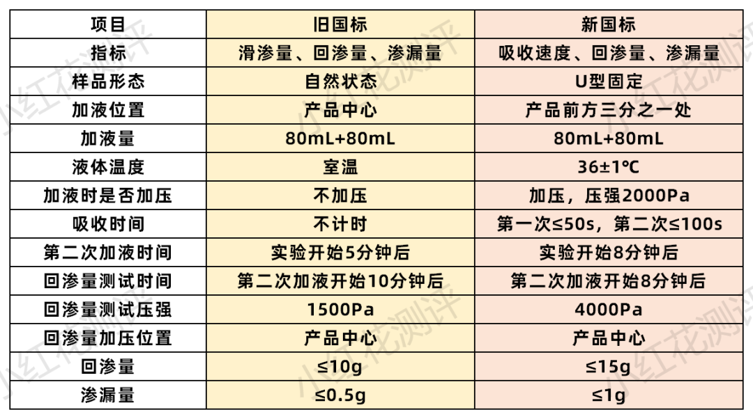 與舊國標相比,新國標中,拉拉褲的滲透性能指標、測試方法均有所改動,花爸總結如下: