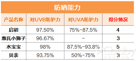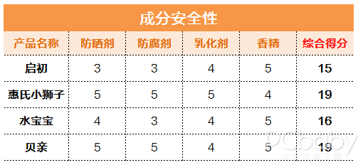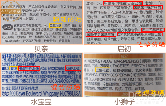 我們可以通過防曬劑成分來分辨防曬霜的種類,初步判斷其性:小獅子和貝親>水寶寶>啟初。