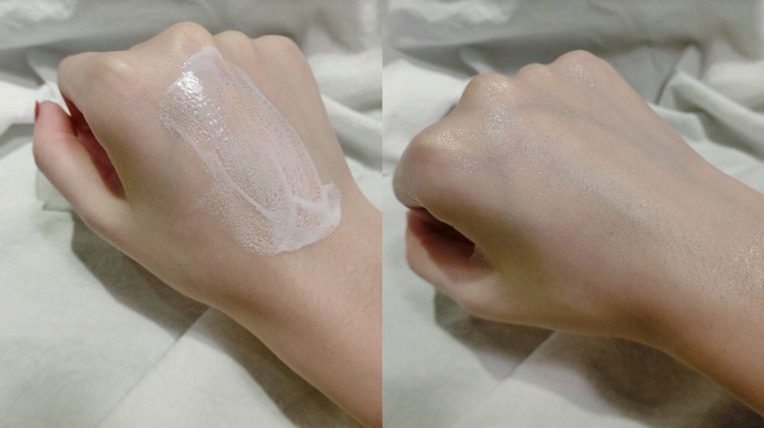 用手輕輕一抹,還會看到乳化后的小水珠,很快就會被皮膚吸收。