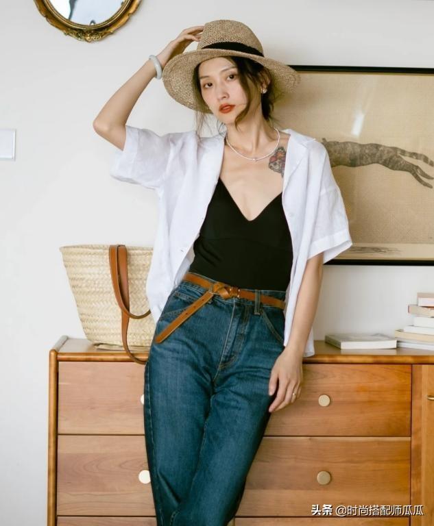 腿型不是很好看,但又不喜歡穿的太寬松的女人,可以試試泳衣配直筒褲。泳衣與直筒褲,可以形成H線條,視覺上有種向內(nèi)的收緊感,所以更加適合身材偏厚重的女性,有些不錯的顯瘦效果。