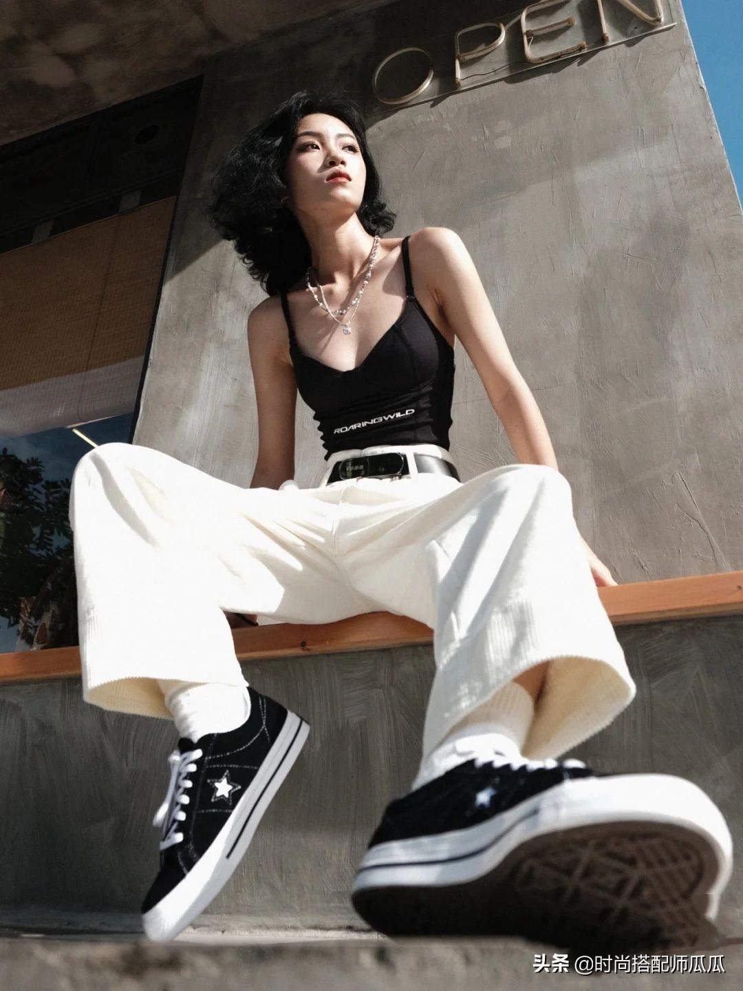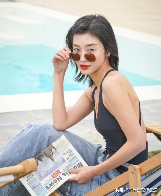 泳衣外穿,,將視線吸引到上半身,所以褲子的選擇盡量選寬松版,利用松緊調(diào)和的方式來烘托好身材,這樣一穿,前凸后翹,即便身材一般也穿出好身材。