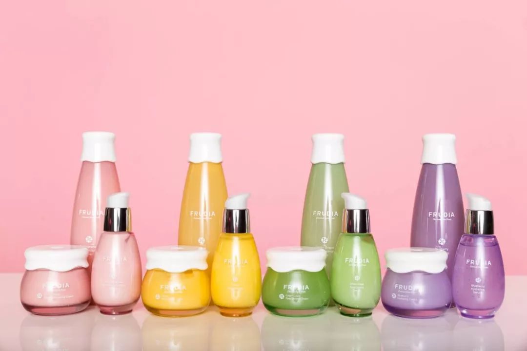 后來推薦一個這兩年在韓國火速走紅的品牌FRUDIA,是韓國老牌化妝品生產(chǎn)企業(yè)WELCOS旗下的品牌,以天然果汁精華做的護膚品,產(chǎn)品系列都是很水果相關(guān)的:青葡萄毛孔護理系列、柑橘肌膚美白系列、石榴抗氧化修護系列、藍莓鎖水保濕系列、牛油果抗敏鎮(zhèn)靜系列及其他手部、唇部護理系列,外觀看起來很像果醬很誘人對不對,圈粉能力可以說是勢不可檔。