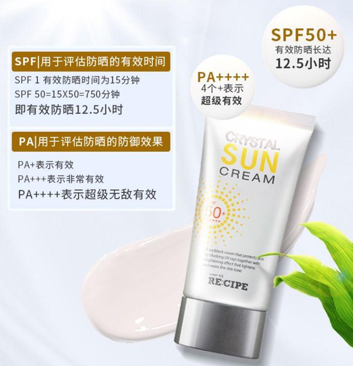 RE:CIPE防曬霜中的SPF就是抵抗UVB的,SPF50+,表示紫外線阻隔率達98%,讓你的肌膚不被曬黑、曬傷。