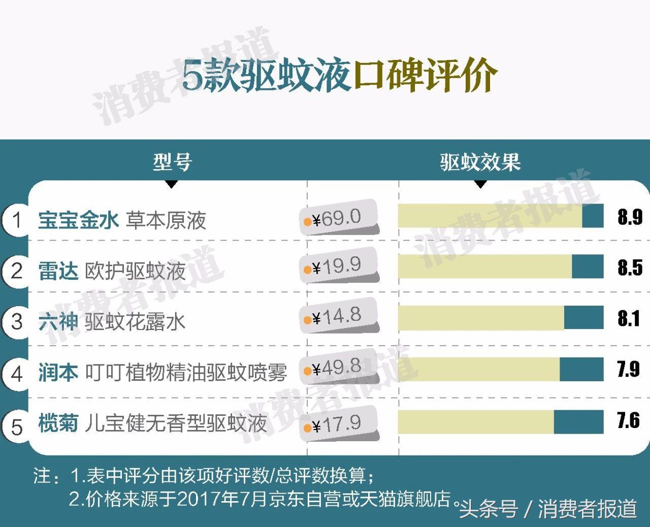 評價數(shù)據顯示,5款驅蚊液中,寶寶金水草本原液的驅蚊效果較好,評論中,消費者反映“給寶寶洗澡用較好”、“止癢”、“寶寶沒有被咬”等。