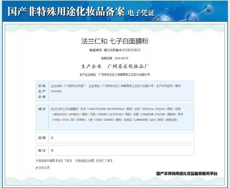 仁和七子白化妝品官方備案,資質齊全,成分表無異常添加,經得起考驗!