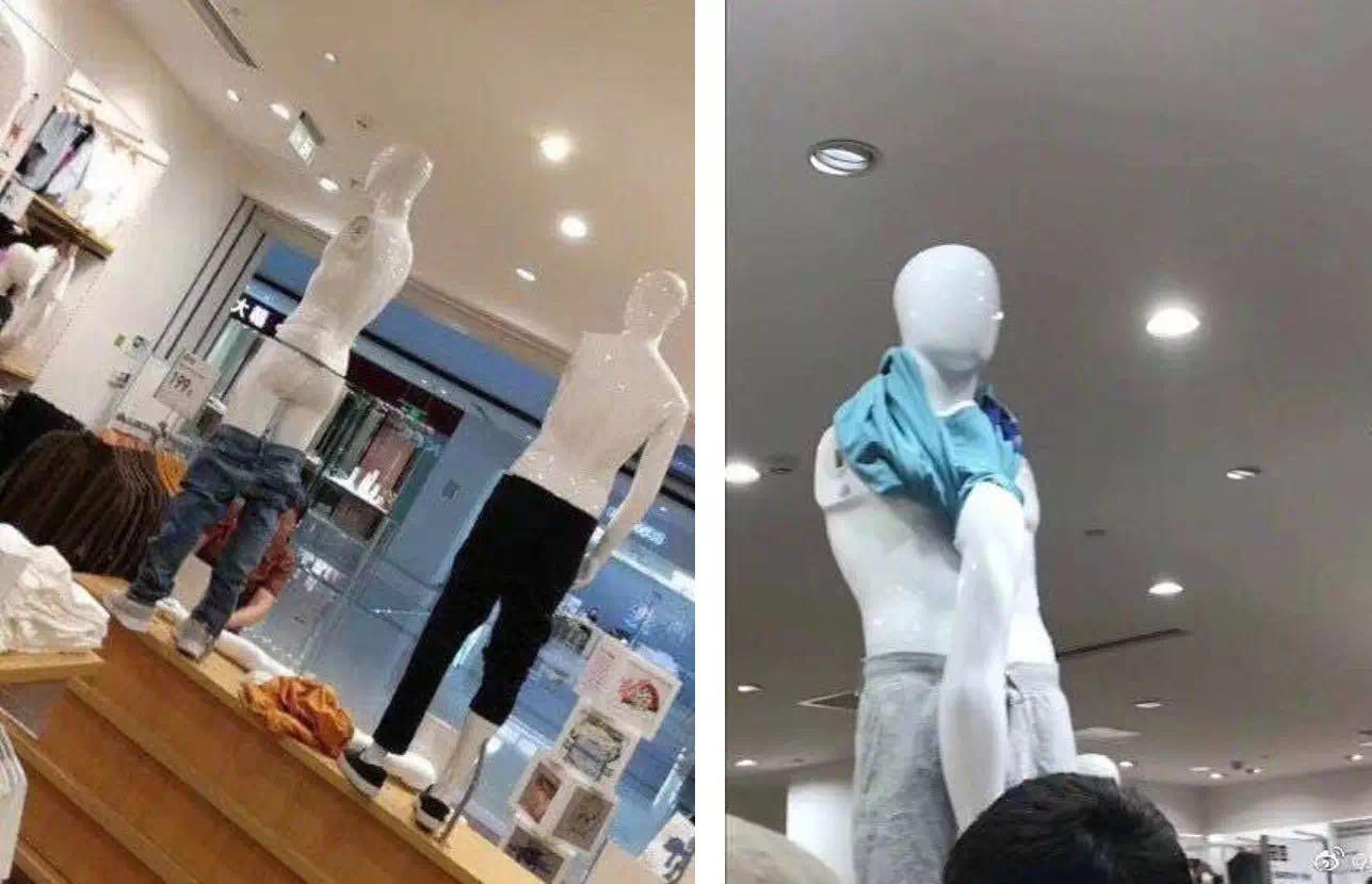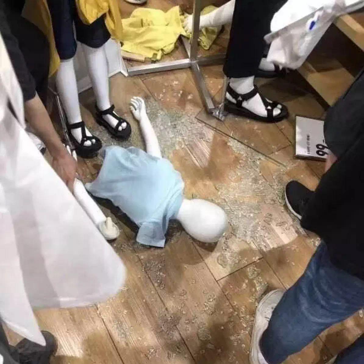 試衣模特也“遍體連傷”,褲子都不剩。就連店鋪里的玻璃也被人潮的擁擠而導(dǎo)致碎裂。