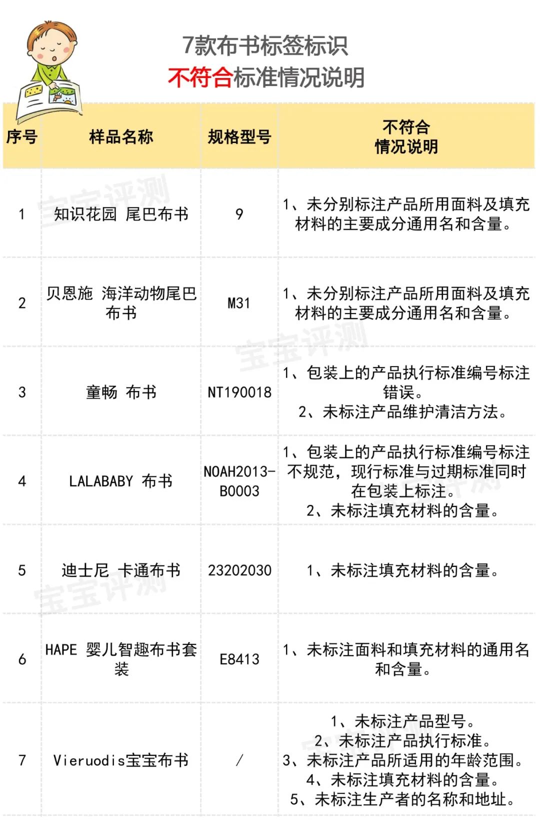 上海消保委測試的20款布書中,有7款布書的產(chǎn)品標(biāo)識標(biāo)注不規(guī)范,具體情況如下表:
