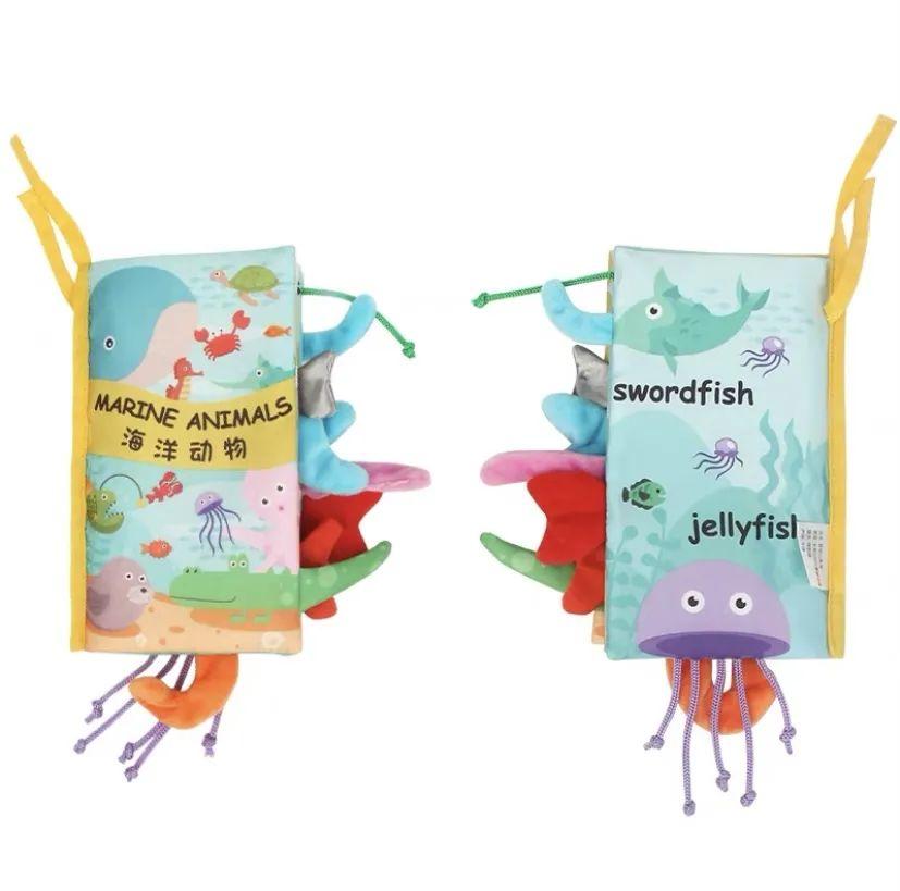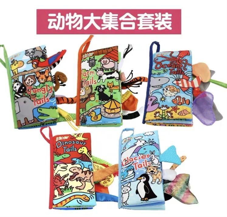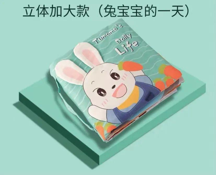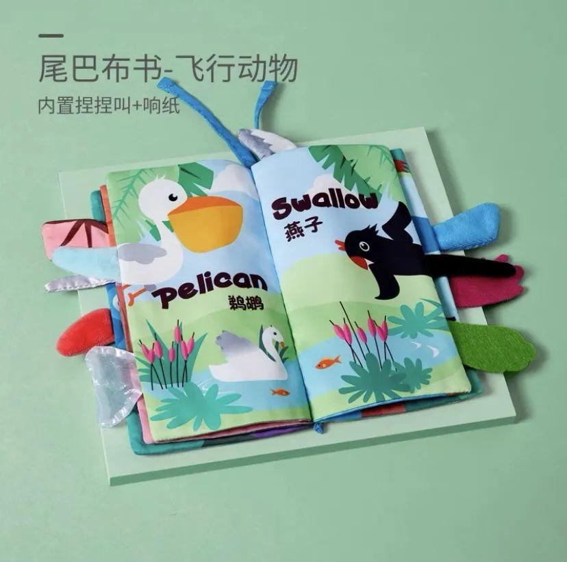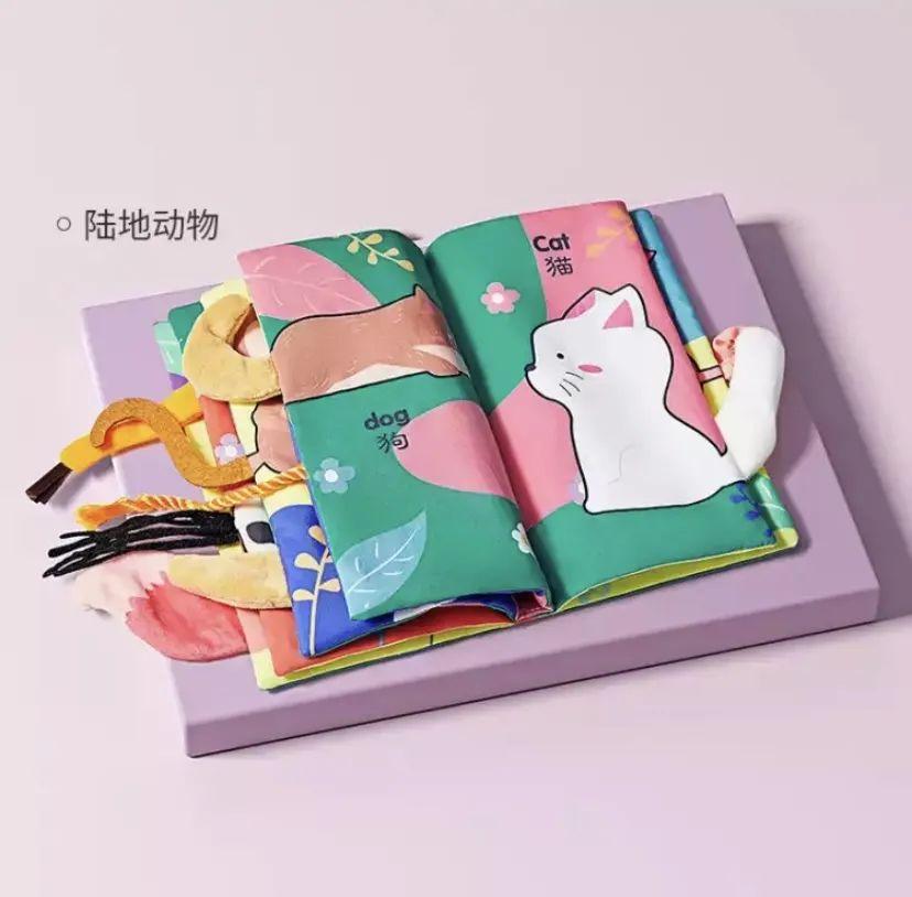 不同于紙質(zhì)的繪本,這些布書的材質(zhì)主要是紡織品,書頁色彩鮮艷,里面會填充棉花或者海綿,而且很多布書會在書頁上附加一些動物尾巴、小玩偶等玩物,讓布書看起來更立體有趣。