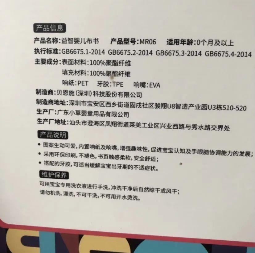 購買布書前,爸媽們了解產(chǎn)品直接的方式就是看產(chǎn)品標(biāo)簽標(biāo)識,包括產(chǎn)品銷售包裝上的文字、數(shù)字、符號、圖案和置于盒內(nèi)的說明書。