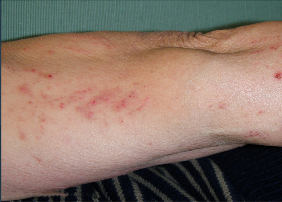 始于無皮疹的瘙癢,由于抓撓摩擦,導(dǎo)致皮膚苔蘚化、表皮剝脫、結(jié)節(jié)等繼發(fā)性改變。