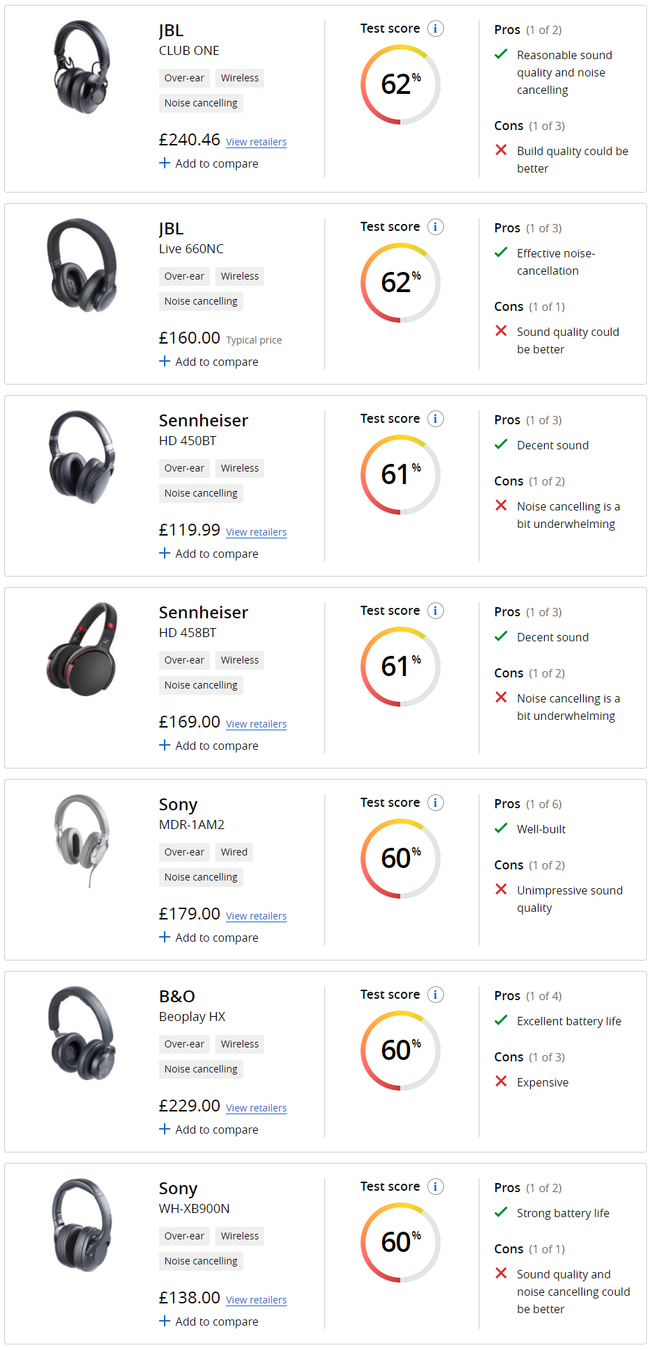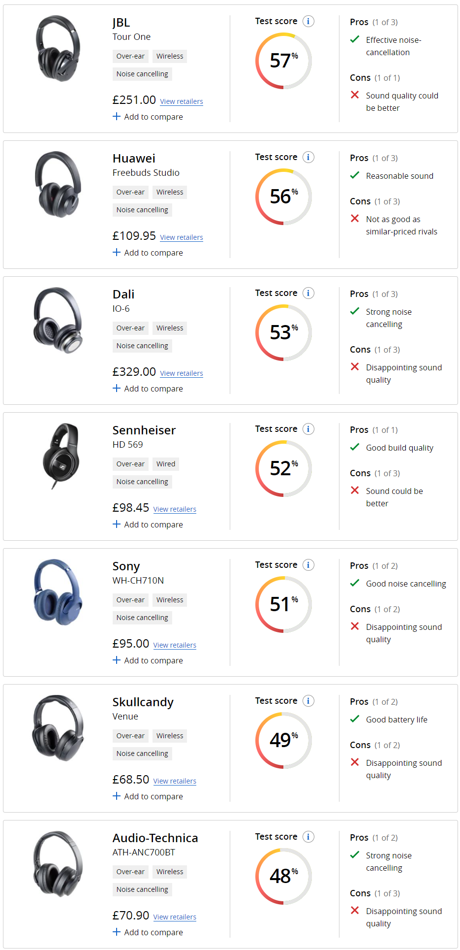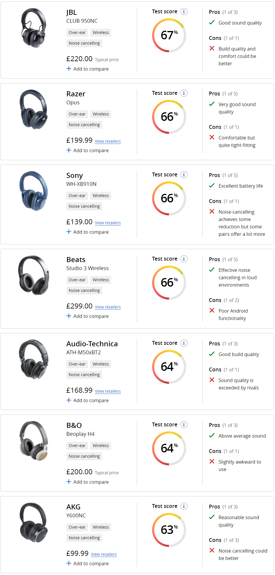 45款耳罩式耳機(jī)測試成績排名你已經(jīng)知道選擇哪個(gè)耳機(jī)品牌了嗎?你還可以參考英國消費(fèi)者組織的獨(dú)立、專業(yè)、詳實(shí)測試結(jié)果。我們之所以在實(shí)驗(yàn)室進(jìn)行嚴(yán)苛的測試,是因?yàn)橄霂椭M(fèi)者選擇正確的耳機(jī)。