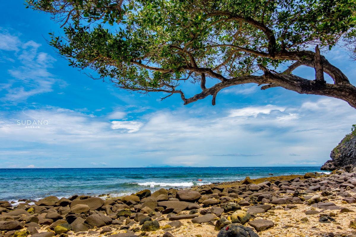 當(dāng)天坐船抵達(dá)島上的時(shí)候,跟著教練我們翻過了一座山,來到了阿波島的另一面。這里幾乎沒有建筑和船只,一切都是原生態(tài)的,包括沙灘和礁石都沒有人為的修飾。聽教練說,在這里潛水看海龜?shù)膸茁蕩缀跏前俜种佟?/p>
