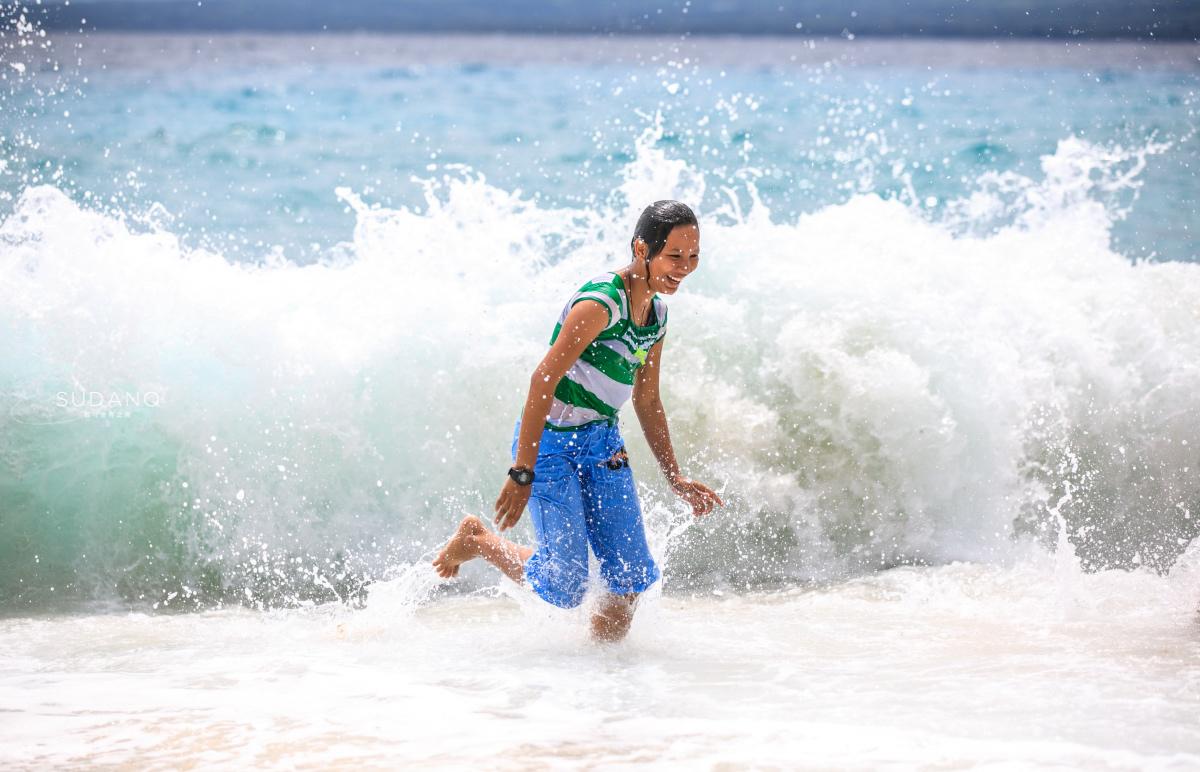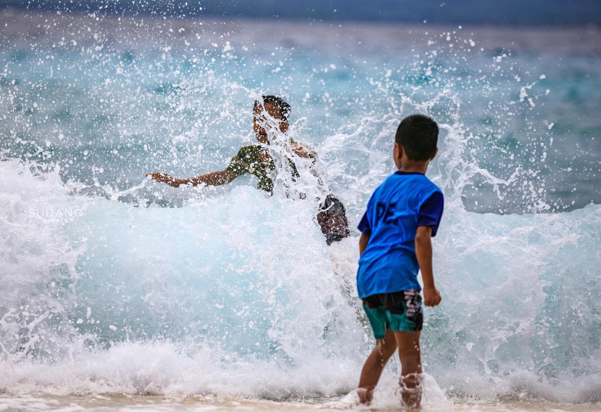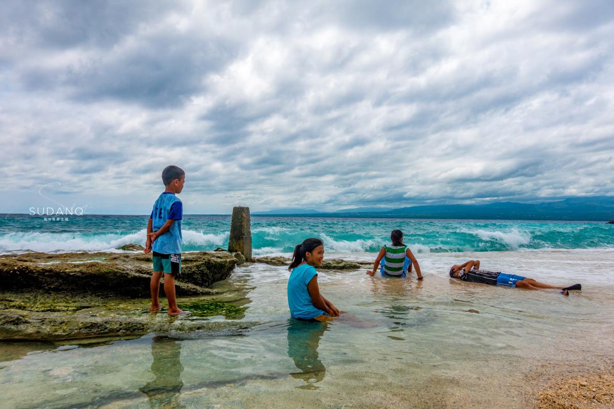 但不管風(fēng)浪多大,他們依然玩得開心,臉上的笑容是那樣的燦爛。不知道大家有沒有發(fā)現(xiàn),許多群島組成的的人們都十分喜歡笑,不論是去泰國,還是菲律賓,包括我之前去過的所羅門群島、瓦努阿圖、斐濟(jì)、大溪地、薩摩亞等,遇到的當(dāng)?shù)厝硕己軔坌Γ乙欢〞?huì)露出牙齒來。這一點(diǎn),讓我感覺好,不僅熱情而且自信。
