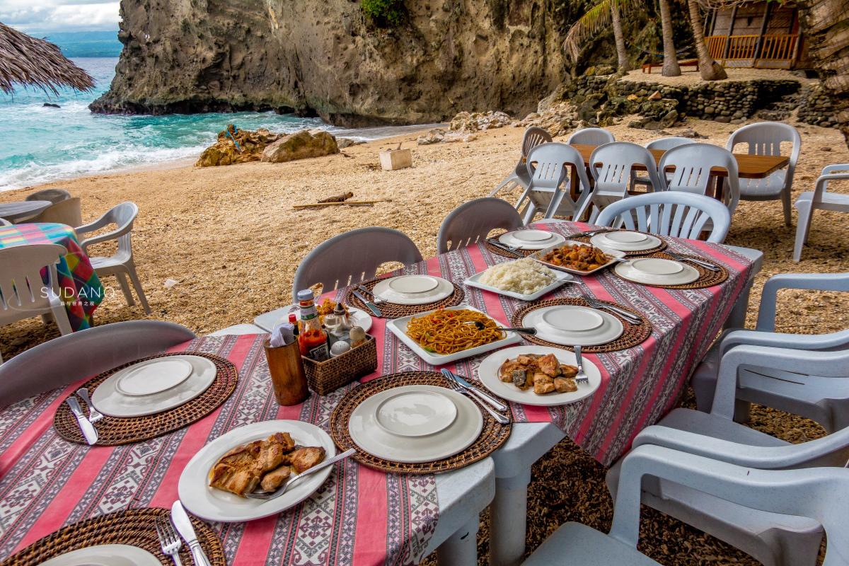 這就是我們要吃飯的地方,餐廳基本上是屬于搭建在海邊的露天餐廳,沙灘海水近在遲尺,在上菜之前,幾個(gè)小伙們們都去玩耍拍照了。由于阿波島上的物資有限,不論是水還是蔬菜都要從外面運(yùn)進(jìn)來,因而這里的消費(fèi)通常比較高,但盡量不要浪費(fèi)哦。