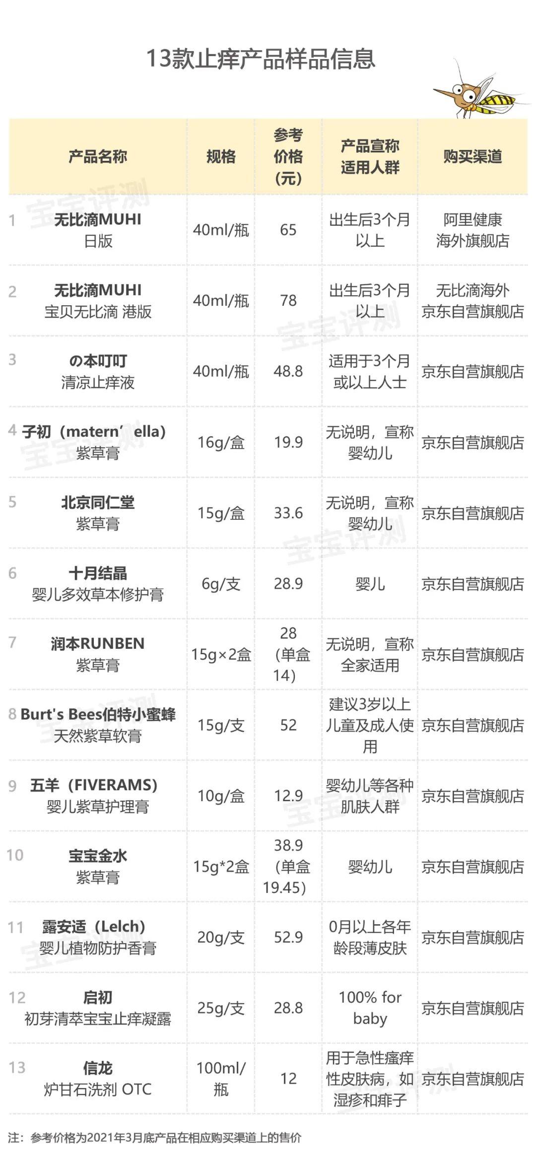 一、評(píng)測(cè)樣品綜合網(wǎng)購(gòu)平臺(tái)銷(xiāo)量以及讀者們的意見(jiàn),這次列入評(píng)測(cè)的寶寶止癢產(chǎn)品一共有13款。