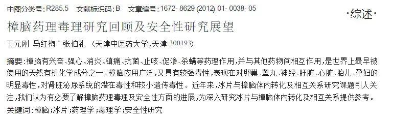 (丁元?jiǎng)偟?,《樟腦藥理毒理研究回顧及性研究展望》,2012年)