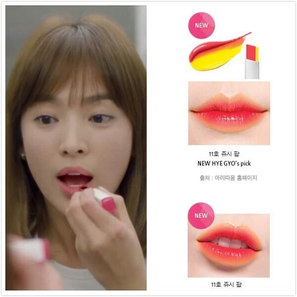 又是一支韓劇女主同款,當年看《太陽的后裔》看的中毒太深,看到喬妹涂這支口紅立馬下單,某寶的試色放的是西柚色+淡的橘色,真人試色后發(fā)現(xiàn),畫出來的唇妝真的不自然,而且還是一個熒光黃+熒光黃,瞬間變身葬愛家族大佬!想單涂一個顏色試色,這個設(shè)計又不好涂,果斷棄之!