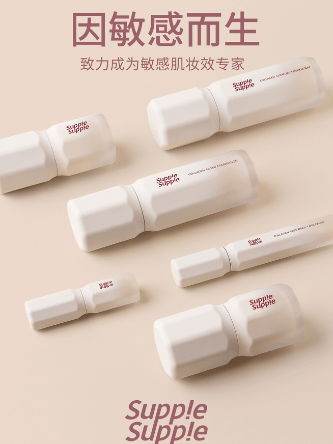 專為敏感肌專研的底妝品牌Supple Supple于3月份上市,其品類涵括2個(gè)色號(hào)的粉底液、1款遮瑕液及4款上妝工具,目前產(chǎn)品僅在官方商城小程序上發(fā)售。據(jù)了解Supple Supple隸屬于保利沃利科技武漢有限公司,是三谷、rever的姐妹品牌。該品牌迎合分肌底妝的趨勢(shì),分別為干敏肌及油敏肌開發(fā)不同配方的底妝。