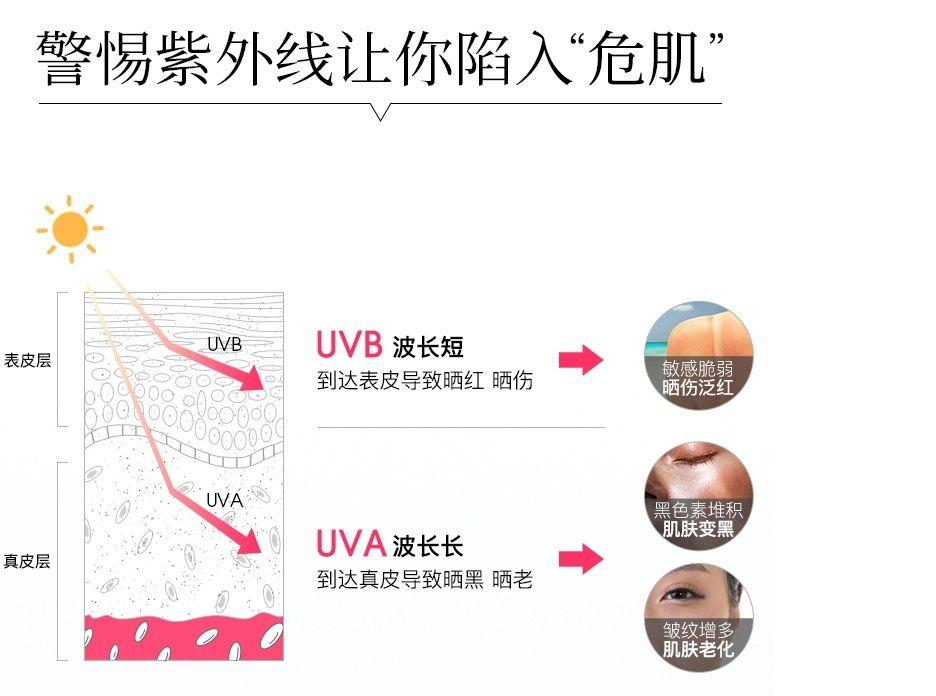 而UA-B也不是什么有益于我們肌膚的物質(zhì),有些敏感肌的女生總說夏季皮膚很容易被曬傷、曬紅甚至蛻皮,而這種情況就是UA-B在作怪!