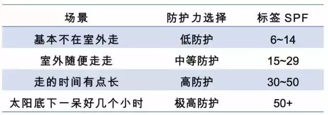 而且SPF和PA值越高,對皮膚的負(fù)擔(dān)越大,按照下面的場景選擇就可以了。