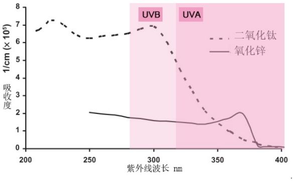 在性上,這兩種防曬成分已經(jīng)被認(rèn)為是可靠的(人體不吸收),而且二氧化鈦和氧化鋅配合下,防護(hù)波段,重點(diǎn)是也比較溫和。