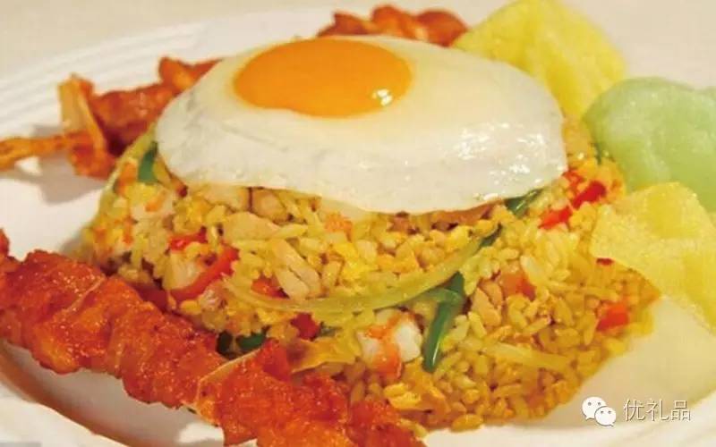 印尼炒飯是巴厘島比較受歡迎的美食。印尼炒飯里主要是放豬肉、雞肉、蔬菜,飯上蓋一個煎雞蛋,海鮮炒飯就是把肉換成蝦仁之類的,味道和中餐口味比較相似。