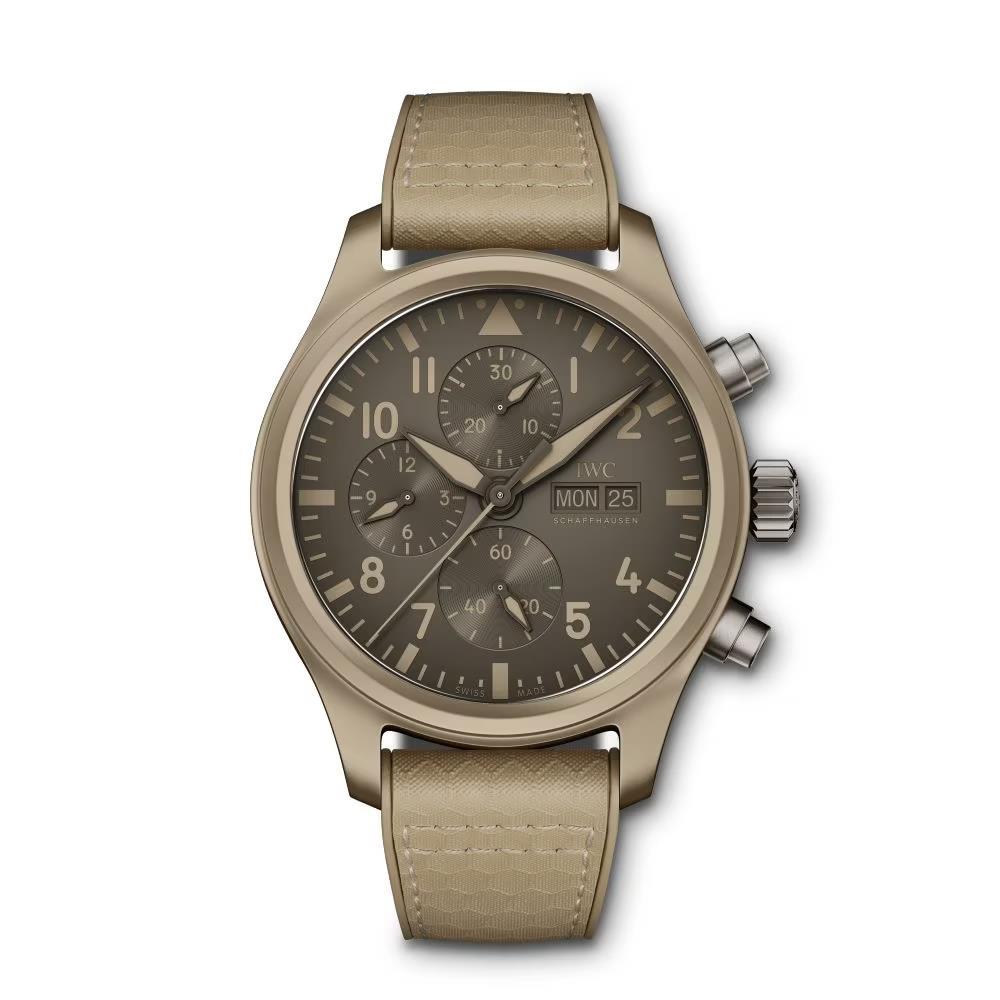 飛行員系列TOP GUN海軍空戰(zhàn)部隊計時腕表“莫哈維沙漠”特別版 (型號:IW389103)作為第一款采用沙色陶瓷表殼的IWC萬國表飛行員腕表, 其設(shè)計靈感源自莫哈維沙漠?(Mojave?Desert),即美國海軍大的陸上基地——中國湖海軍航空武器試驗地?(Naval?Air?Weapons?Station?China?Lake)?所在地。其色彩由氧化鋯與 其他金屬氧化物共同打造而成,高度匹配TOP GUN飛行員 所著飛行制服。