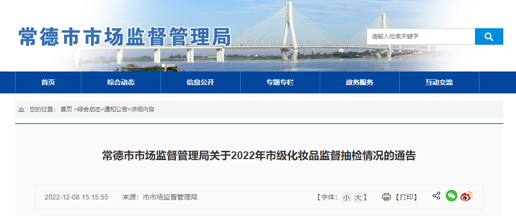 中國質(zhì)量新聞網(wǎng)訊 12月8日,湖南省常德市市場監(jiān)督管理局發(fā)布2022年市級化妝品監(jiān)督抽檢情況。為保障公眾用妝,根據(jù)《化妝品監(jiān)督管理條例》相關(guān)規(guī)定和常德市市級化妝品監(jiān)督抽檢工作計劃,2022年該局對全市轄區(qū)內(nèi)化妝品經(jīng)營單位20批次的化妝品進行了抽檢,檢驗結(jié)果全部符合規(guī)定。