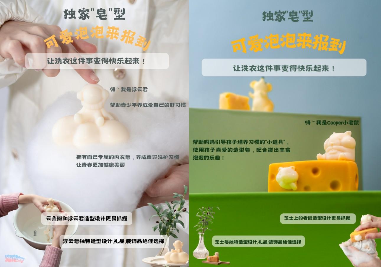 此兩款內(nèi)衣皂作為泡泡ING工作室的首波主打產(chǎn)品,正用其萌趣模樣,環(huán)保意識(shí)影響著全市乃至全國(guó)的青少年以及父母的洗護(hù)新理念。