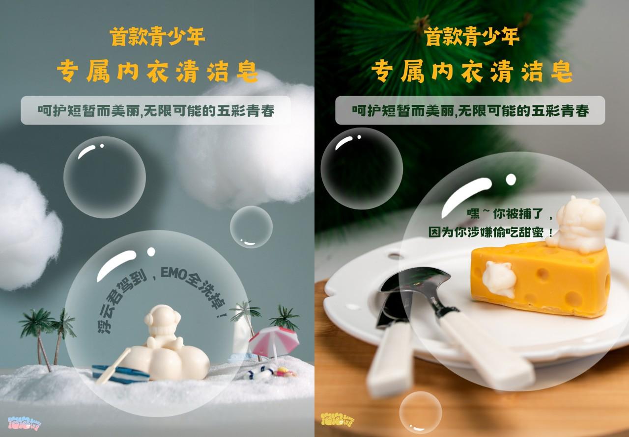 由呵護(hù)青春的專業(yè)洗護(hù)品牌--成都泡泡ING工作室?guī)?lái)青少年專屬內(nèi)衣皂:浮云皂&芝士皂,以它們獨(dú)特的皂型,勢(shì)必在青少年洗護(hù)品牌市場(chǎng)掀起一陣青春風(fēng)暴。