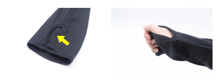 袖口做了拇指扣設(shè)計(jì),上身穿著時(shí)可覆蓋住掌背,增大了防曬面積,戶外騎行時(shí)也能起到掌心防滑作用。