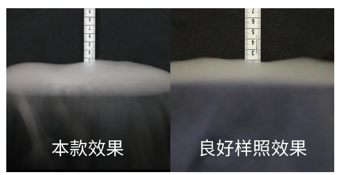 結(jié)論:經(jīng)實(shí)測(cè),氣體透過(guò)這件防曬衣的高高度為2.8cm,且平均高度也在2.8cm左右,透氣性良好且均勻,不易有悶汗黏膩感。