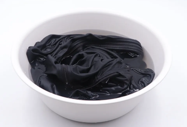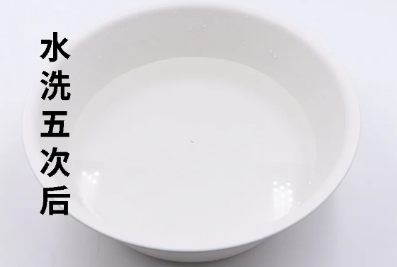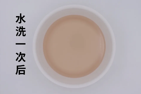 結(jié)論:充分浸泡約15分鐘后,這件防曬衣出現(xiàn)浮色,盆中水呈橙色,屬深色衣物首洗的正常現(xiàn)象。水洗五次后再次泡盆,它的浮色情況得到改良,盆中余水清澈見(jiàn)底。