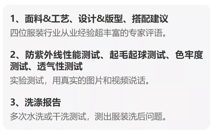 關(guān)于防曬外套的具體測(cè)評(píng)維度為: