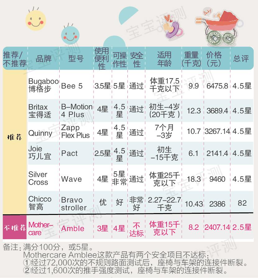 注意:Mothercare Amblee的產(chǎn)品有2項(xiàng)指標(biāo)不達(dá)標(biāo),不推薦購買。