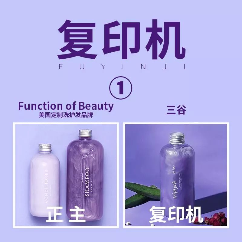 從外觀上看,乍一眼看三谷和Function of Beauty可以說(shuō)是一毛一樣,再仔細(xì)一看,可能會(huì)發(fā)現(xiàn)瓶身上的白色英文字體有所不同。而且Function of Beauty是為消費(fèi)者自身發(fā)質(zhì)和護(hù)發(fā)需求定制洗發(fā)水,瓶身可以按消費(fèi)者需求加上名字,同時(shí)有“Made IN USA”字樣?,F(xiàn)在,F(xiàn)unction of Beauty的瓶身還可以加上印花等圖案。