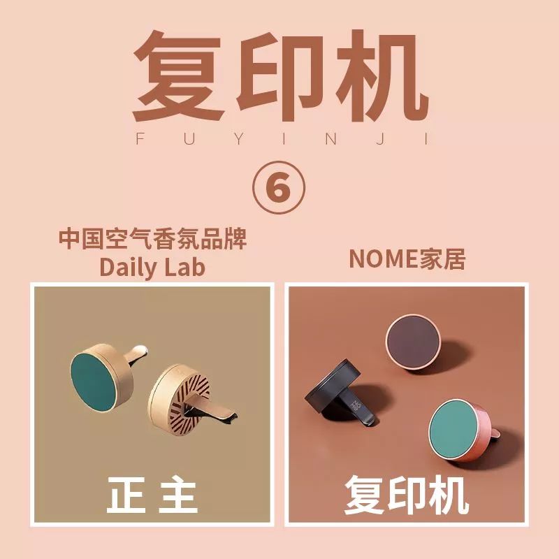 前不久,中國(guó)空氣香氛品牌Daily Lab發(fā)聲曝出國(guó)內(nèi)知名百貨品牌NOME家居抄襲了他們的一款360車載香氛,據(jù)Daily Lab稱,NOME的抄襲款質(zhì)量并不好,香味也是一股廉價(jià)香精的味道。在發(fā)現(xiàn)被抄襲之后,Daily Lab第一時(shí)間聯(lián)系了對(duì)方,但NOME簡(jiǎn)簡(jiǎn)單單地回復(fù)了三個(gè)字——“不需要”。
