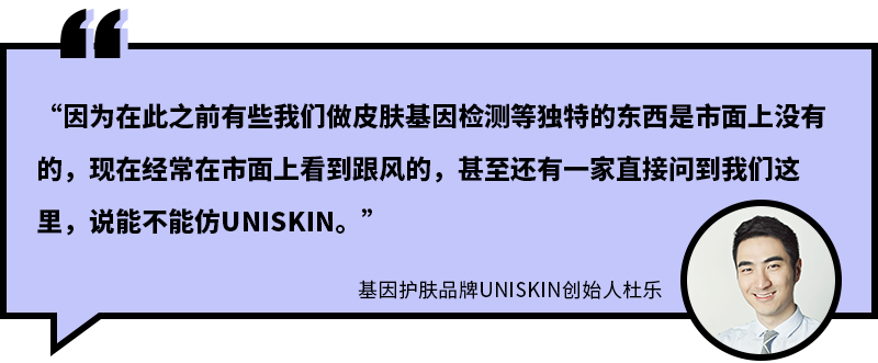 UNISKIN創(chuàng)始人杜樂(lè)在這個(gè)問(wèn)題上也是持有相同的看法,既然杜絕不了抄襲,那就做好的自己:“就像賽跑一樣,不能因?yàn)閯e人跑上來(lái)了就自己不跑了,反而想著怎么讓別人停下來(lái),而是要永遠(yuǎn)保持自己的創(chuàng)新能力,永遠(yuǎn)先人一步。”