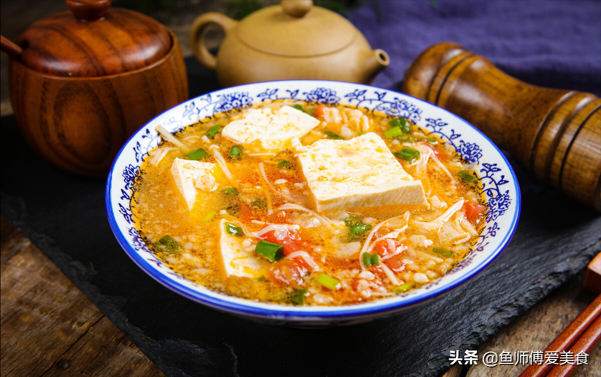 食材:豆腐約500克,西紅柿2只,金針菇約150克,蔥姜各少許。